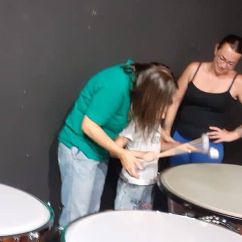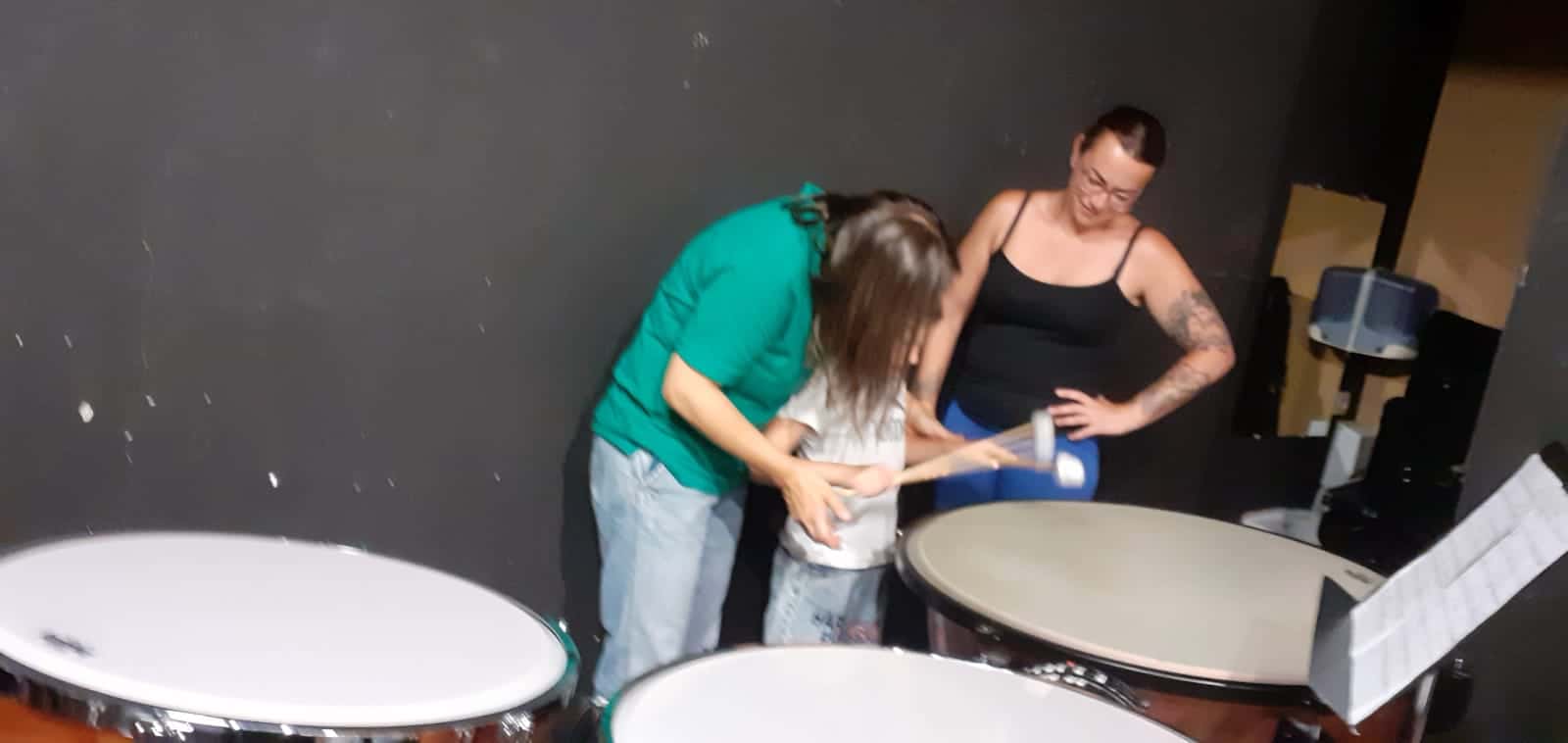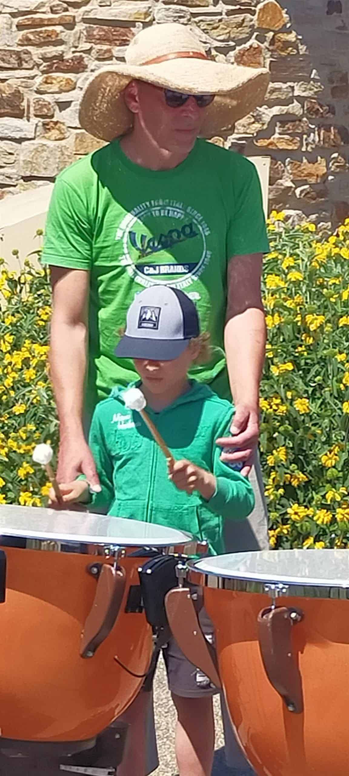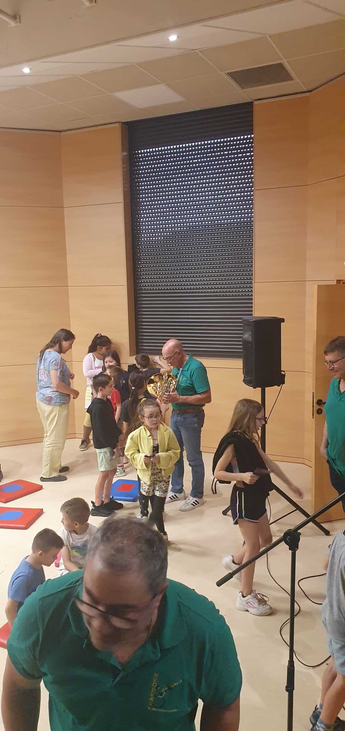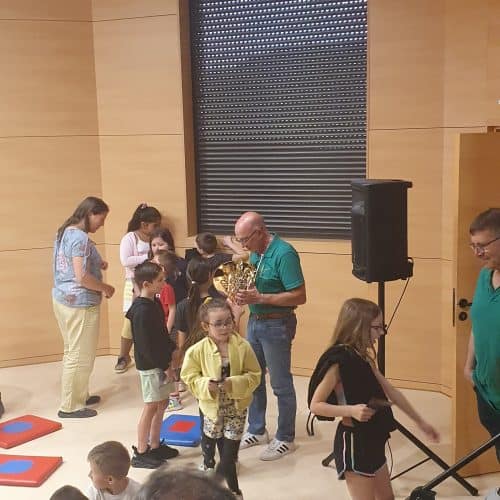 Après avoir détaillé une oeuvre aux élèves et présenté les instruments de musique d’un orchestre d’harmonie, les enfants approchent de près les instruments et les musiciens.